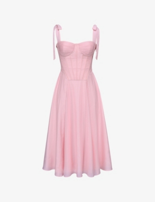 Leia Tie-Strap Corseted Cotton Midi Dress