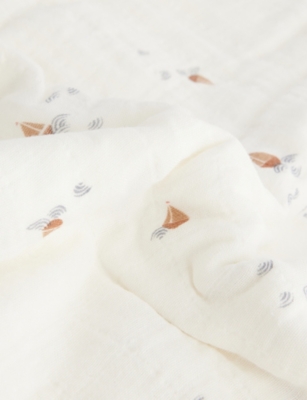 Organic Zoo x Abigail Edwards Seascape Reversible Cotton-Jersey Blanket- Price:$107.00
