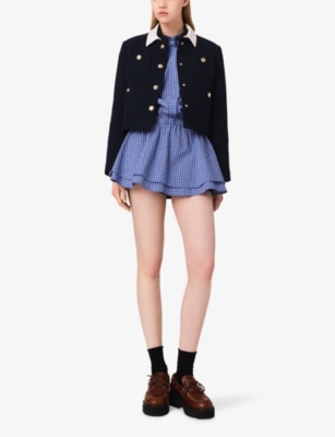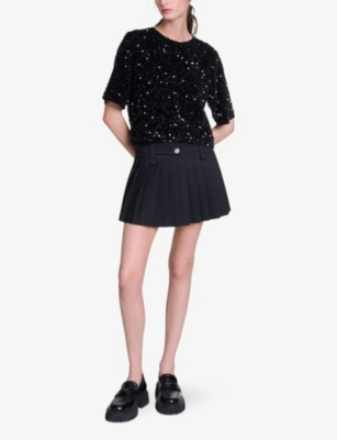 Round-Neck Flared-Skirt Stretch-Knit Mini Dress- Discount price:$320.00
