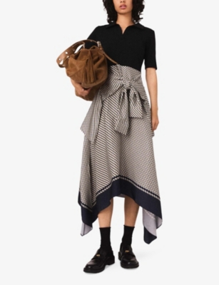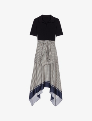 Bow-Print Collared Stretch-Cotton and Woven Midi Dress- Discount price:$465.00