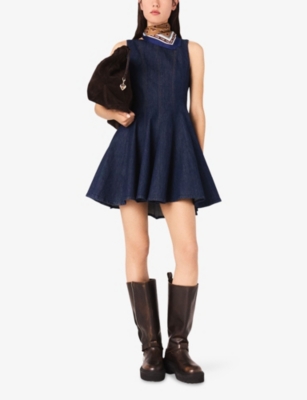 Round-Neck Flared-Skirt Stretch-Knit Mini Dress- Discount price:$275.00