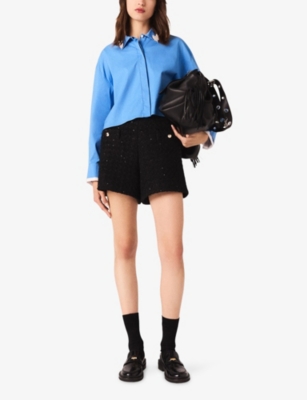 Rhinestone-Embellished Crossed-Front Stretch-Woven Shorts- Discount price:$300.00