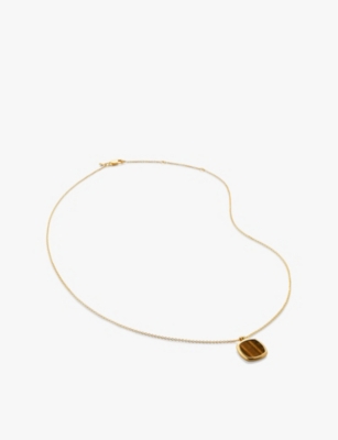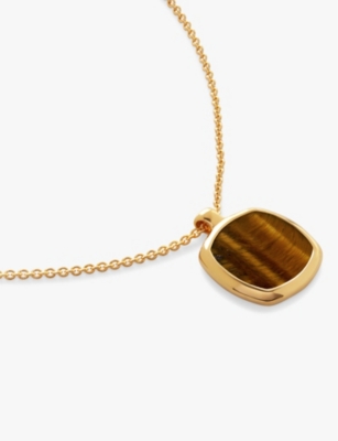 Delphi 18ct yellow gold-plated vermeil sterling-silver and tiger's eye pendant necklace- Price:$215.00