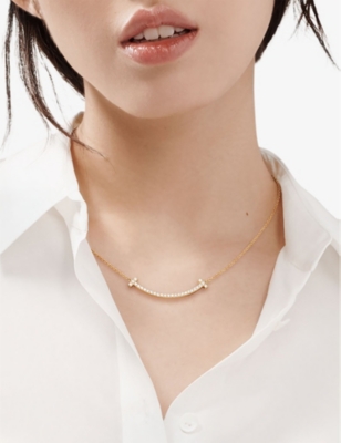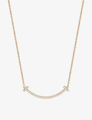 Tiffany T Medium Smile 18ct yellow-gold and 0.48ct brilliant-cut diamond pendant necklace- Price:$11,360.00