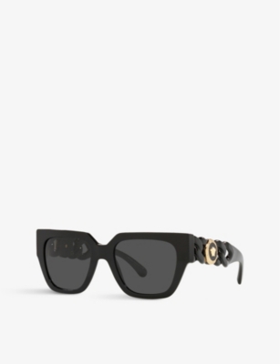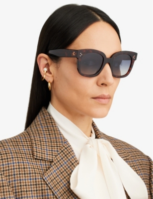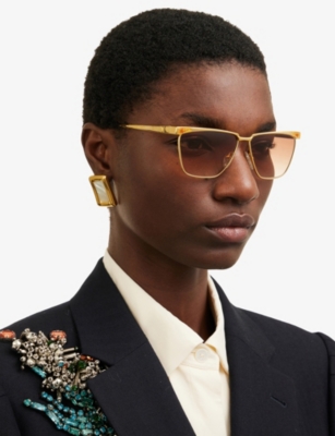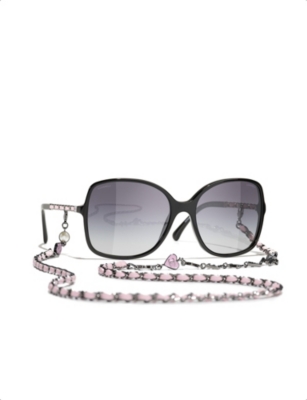 Across our selection, you can explore an array of statement silhouettes. Sharp edges offer a futuristic geometric aesthetic, while square shades with cat-eye corners offer retro-inspired glamour. A pair of women's oversized square sunglasses provide a dose of drama, ideal for those who enjoy making a statement. Opulent embellishments appear throughout, including detachable silver chains, crystal trims and gold moniker-adorned arms.Â