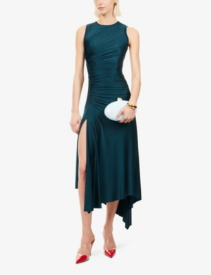 VICTORIA BECKHAM: Twist Asymmetric-Hem Woven Midi DressVICTORIA BECKHAM: Twist Asymmetric-Hem Woven Midi Dress