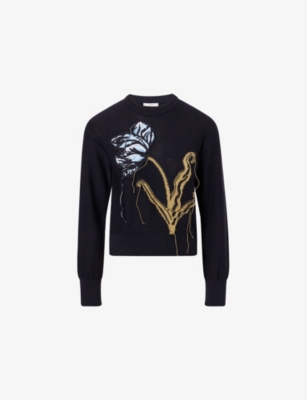 ERDEM: Embroidered-Floral Wool-And-Cotton JumperERDEM: Embroidered-Floral Wool-And-Cotton Jumper