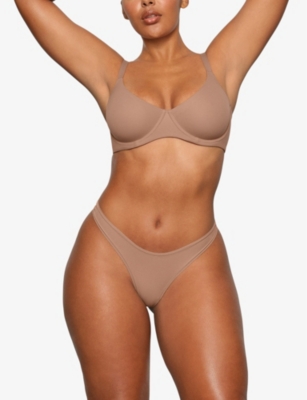Discover women's bras crafted from premium materials and take your pick from stretchy jersey and cotton blends with panels of opulent lace and mesh. Soft bralettes offer a smooth texture under tees and seamless styles in nude tones practically disappear beneath brilliant white shirts and lighter fabrics. Searching for undergarments to wear with your cocktail dress? Choose bandeaus for invisible support with off-the-shoulder dresses or slip on a low-backed piece to accentuate cutouts. If you're looking for flattering shaping, wired designs combine sculpting with comfort, while balconettes provide extra lift.