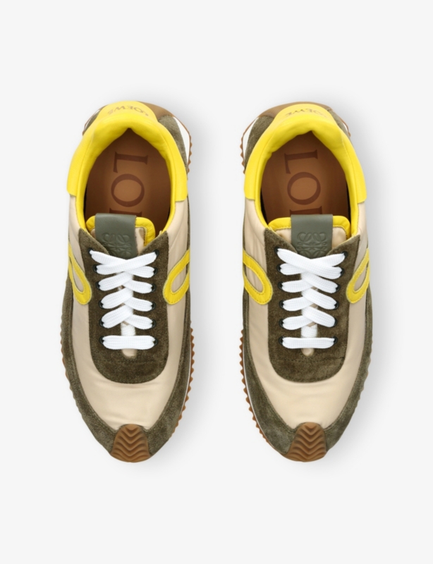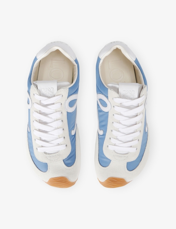 - Low-top design, wave sole, contrast stitching, embossed Anagram on tongue and side