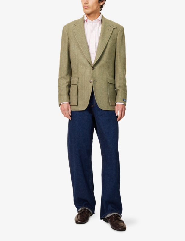 - Custom fit, buttoned placket, long sleeves with buttoned cuffs, split back yoke with a box pleat, logo embroidered on the left chest