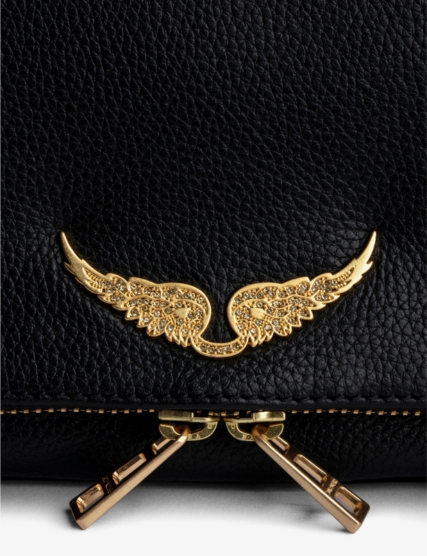 - Structured shape, detachable shoulder strap, zipped inside pocket, zipped gussets, diamante-embellished logo