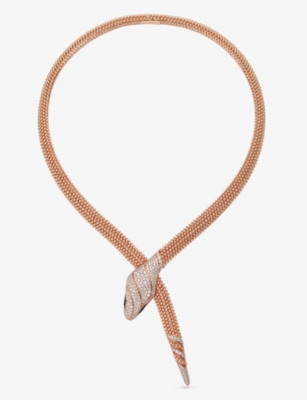 Serpenti Viper 18ct yellow-gold and 0.63ct round-cut diamond pendant necklace- Price:¥93,400.00
