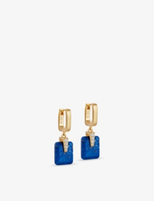 Deco 18ct Yellow Gold Vermeil, Lapis And White Sapphire Drop Huggies- Discount price:¥1,210.00