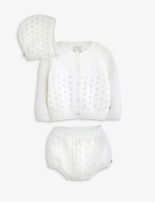 Opt for a newborn baby gift set that includes baby grows and playsuits with sweet prints and endearing embroideries, crafted with soft cotton. Discover perennial parent favourites boasting much-needed bibs, comforters and hats that keep them warm during their very first park strolls. Bedtimes become extra special with pyjama and book sets that are sure to lull them into a peaceful slumber.