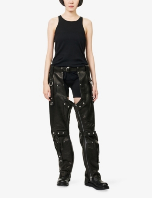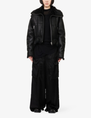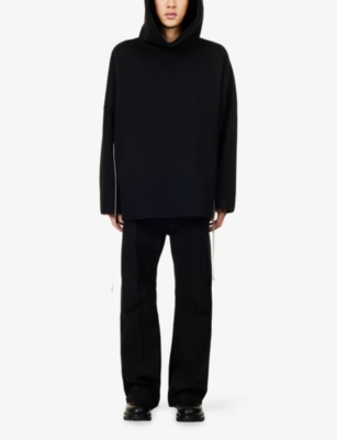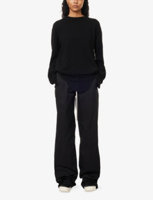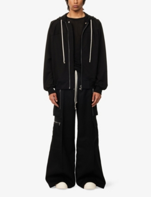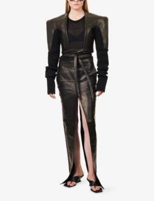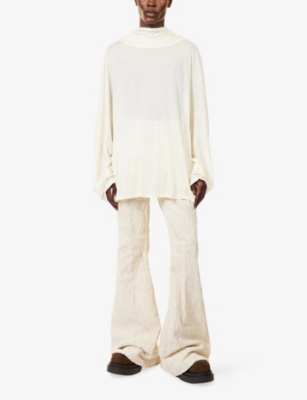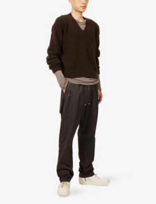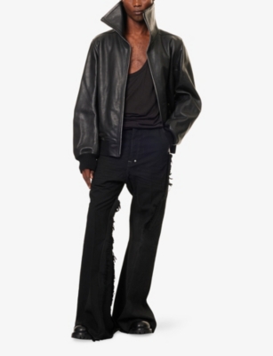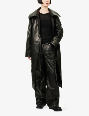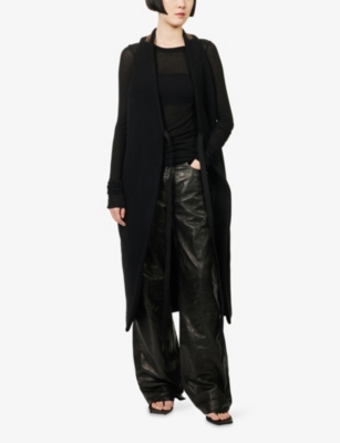 Discover all that the Paris-based label has to offer with our extensive Rick Owens collection. Look out for the signature design touches that have bestowed cult status upon the brand: waterfall draped jackets and cardigans, dropped crotch trousers, stacked sole platforms and raw asymmetric hems - all in the moody colour palette that the designer prefers. Even the most minimal of these garments are crafted in lavish fabrics. Explore knitwear in pure cashmere, smooth leather jackets, party pieces in slinky silk and velvet and versatile basics in the softest woven yarns. Ever adaptable, a Rick Owens item can be styled as part of a head to toe runway look, or to add an unorthodox layer to everyday ensembles.