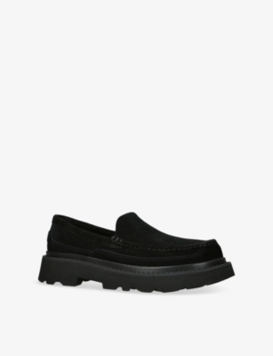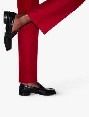 A black loafer is a cornerstone of men's fashion, allowing endless versatility across multiple occasions and dress codes. Wear this classic shoe casually with denim jeans or laid-back chinos or, for a dressier look, with suit trousers. With a variety of shapes and detailing, from almond-toe to buckled and leather-trimmed, you can pick the shoe that suits you. Maybe it's a leather pair with a sleek sole or a chunkier option that offers a fresh alternative to this recognisable silhouette. For a special occasion, why not opt for men's loafers with traditional side stitching, fringing or a metal horsebit embellishment?Â