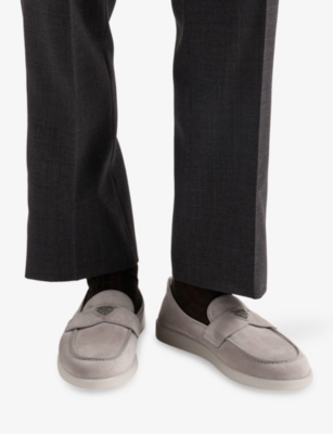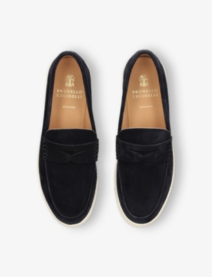 Hybrid Logo-Embroidered Suede Penny Loafers- Discount price:Â¥5,550.00
