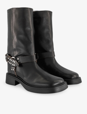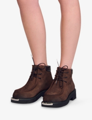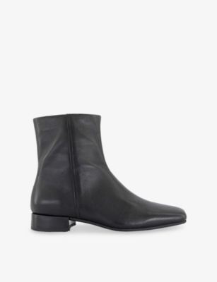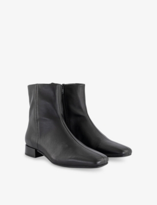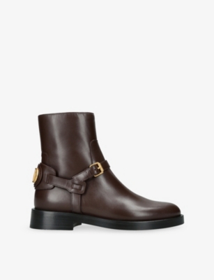 We have flat ankle boots spun in supple natural materials that are finished with glossy metal-toned hardware and enhanced with embroidered details. Look out for classic Chelsea boots in versatile blacks and browns, as well as grunge-inspired, lace-up combat boots with sturdy treads. Turn heads with embellishments including faux pearls and metallic studs that channel a rock'n'roll spirit. Or, go West with pointed-toe silhouettes paired with Cuban heels that evoke an on-the-range aesthetic.