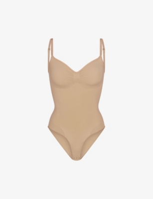 For full coverage, browse our range of SKIMS bodysuits that create a sleek silhouette. The supportive underwear and briefs have elasticated bands and a seamless construction so they'll go undetected under your outfit. Waist trainers are created from soft neoprene with boning and accentuate your natural curves. We also have maternity styles, such as high-waisted options crafted with a non-compressive core. Explore a wide selection of smooth and flattering SKIMS pieces at Selfridges - each designed to fit like a second skin.
