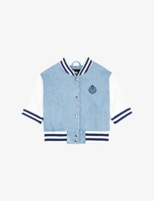 Collared Button-Down Short-Sleeve Denim Jacket- Discount price:Â¥1,330.00