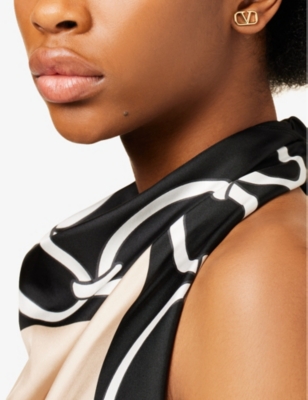 It wouldn't be Valentino without the signature VLogo. Crafted from polished metal, the iconic V initial doubles as a buckle for the brand's range of leather belts. Why not complement this statement item with some matching jewellery? From crystal-embellished earrings to brass necklaces, you'll find the VLogo shining throughout this collection.