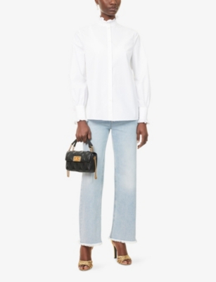 Jump in feet-first with a pair of Valentino Garavani trainers embellished with studs around the ankles, or chunky trainers, made from premium Italian leather. The label's range of boots remains loyal to the brand's punk inspirations - think platform soles and silver-tone studs. Moving up from the feet, you'll find statement bags, including cross-bodies, totes and clutches. Crafted from premium leather, including finely grained calf, these bags offer both durability and couture style. Make sure to keep an eye out for the label's trademark metal rockstuds, which embellish many of the bags for a hint of rebellion.