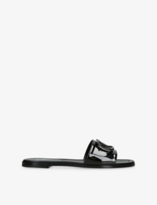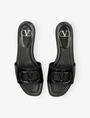 VALENTINO GARAVANI: V-Logo Signature Patent-Leather SlidesVALENTINO GARAVANI: V-Logo Signature Patent-Leather Slides