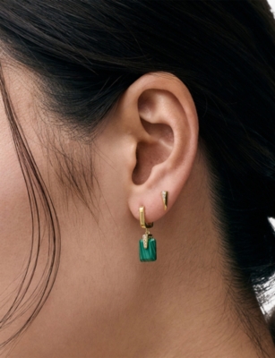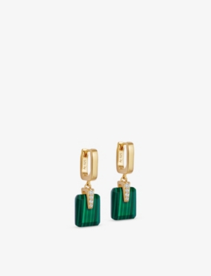 Deco 18ct Yellow Gold Vermeil, Malachite And White Sapphire Drop Huggies- Discount price:Â¥1,210.00