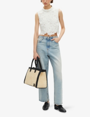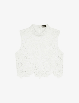 High-Neck Lace-Embroidered Short Woven Top- Discount price:Â¥1,670.00