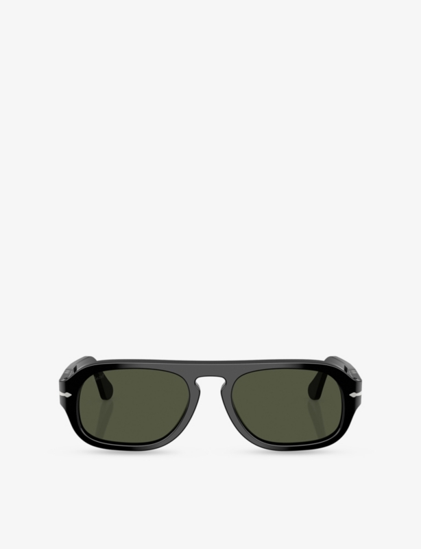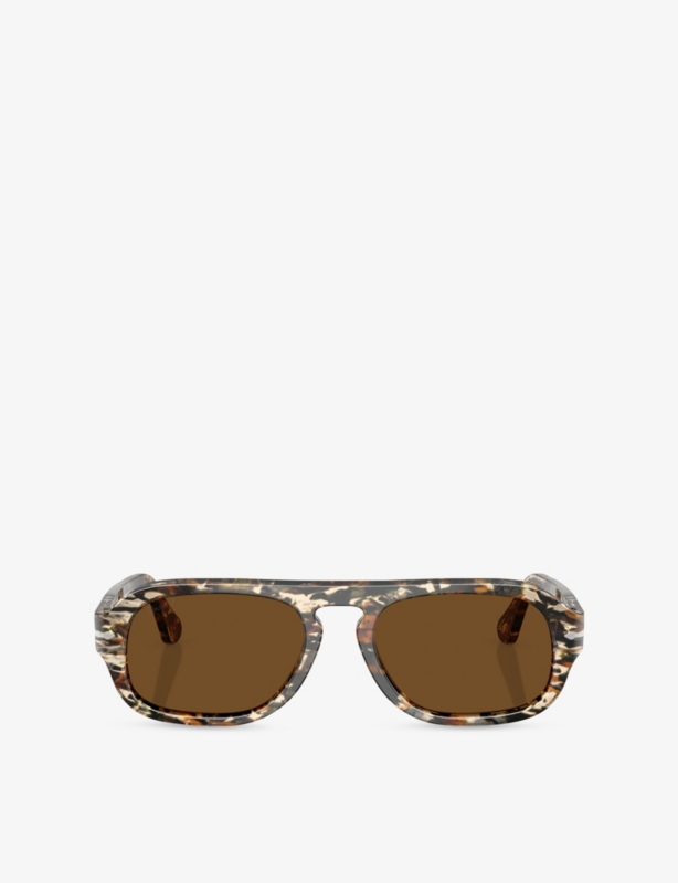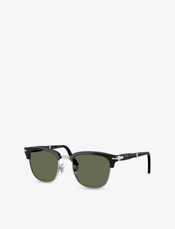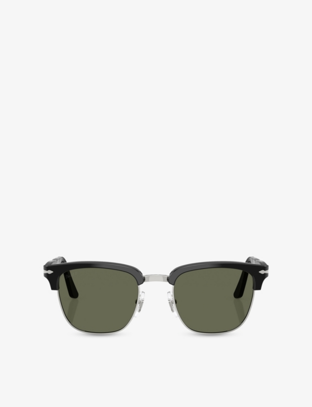 <li>Silver-toned arm and lense frame detail, silver-toned inner-arm tip logo detail