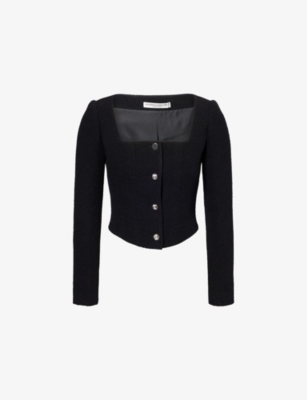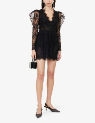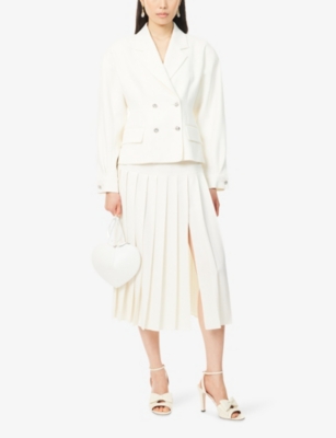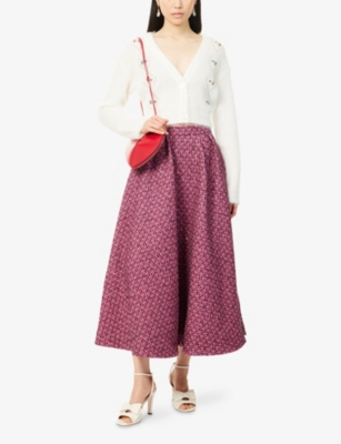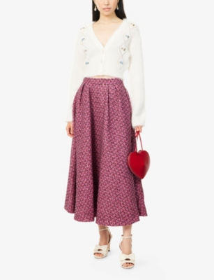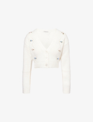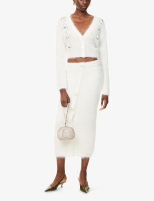 In our selection of Alessandra Rich clothing, discover riffs on a nostalgic aesthetic: think structured collars and button-down fronts that create instant smartness. Luxury and vintage-inspired fabrics such as silk taffeta and Chantilly lace make regular appearances, as do hourglass fits borrowed straight from the 1940s and 50s. Choose a fitted dress from Alessandra Rich, then layer a fluffy cropped cardigan over the top for an eclectic look.