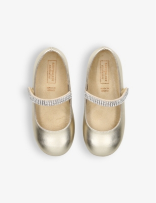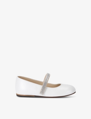 Baby Swarovski Crystal-Embellished Leather Ballerina Pumps
