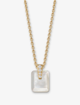 Deco 18ct Yellow Gold Vermeil, Mother-Of-Pearl And White Sapphire Pendant Necklace- Price:€160.00
