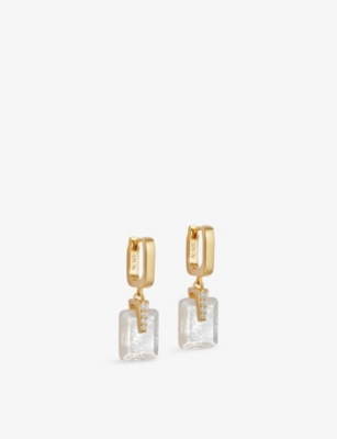 Deco 18ct Yellow Gold Vermeil, Mother-Of-Pearl And White Sapphire Drop Huggies- Price:€190.00