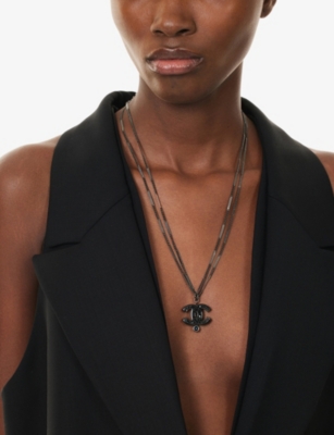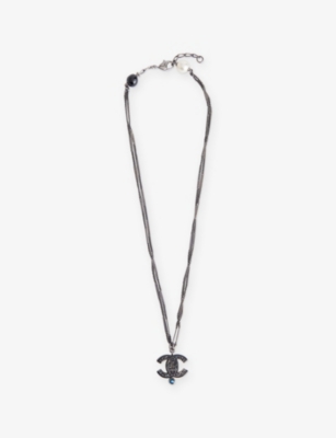 Pre-Loved Chanel Ruthenium Resin Faux Pearl and Crystal Double Chain Necklace- Price:€815.00
