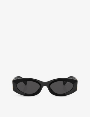 Introducing Miu Miu, a symbol of sophistication and playfulness, available at Selfridges. Miu Miu offers a collection of high-end fashion and accessories that exude a youthful and contemporary vibe. Renowned for its bold colours, quirky prints, and unexpected details, Miu Miu pieces are designed to make a statement. Each garment is meticulously crafted with the finest materials and attention to detail, ensuring both style and quality. From chic dresses and tailored separates to iconic handbags and accessories, Miu Miu presents an array of options for the modern fashionista. Whether you're dressing for a special occasion or adding a touch of eccentricity to your everyday look, Miu Miu has something to elevate your style with effortless charm. Explore the selection of Miu Miu at Selfridges and embrace the essence of playful sophistication.