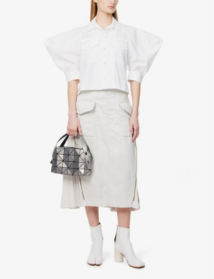 So, how does Sacai fashion achieve this? Through the brand's clever spins on classic designs. Each piece has a different front to back, breaking traditional fashion rules while still looking sharp. Jumpers and jackets combine to create innovative outerwear, while T-shirts blend with blouses to produce a dressier version of the wardrobe basic. Hems on skirts and dresses are often asymmetrical, flattering the silhouette with their understated elegance.