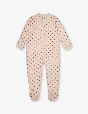 Heart-pattern long-sleeve cotton-jersey babygrow 0-18 months- Price:€56.00
