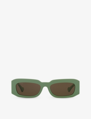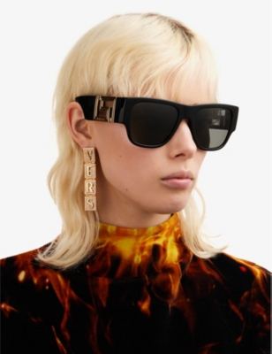 If you're hoping to make a strong sartorial statement, you may find yourself drawn to oversized D-frame sunglasses. They become even more dramatic when designed with thick acetate borders and bold, straight bridges. Choose classic black for maximum versatility, or opt for playful gradient options. Brown square sunglasses embody both ease and glamour, and are reminiscent of 70s bohemian styling. Do you have your sights set firmly on the future? Gleaming mirrored lenses are a super-modern choice. These items command even more attention in faceted shapes highlighted with polished hardware details. More minimal dressers will rejoice in sleek, rimless designs. These barely-there glasses are a celebration of simplicity, made complete by colourful tints and understated logos at the temples.