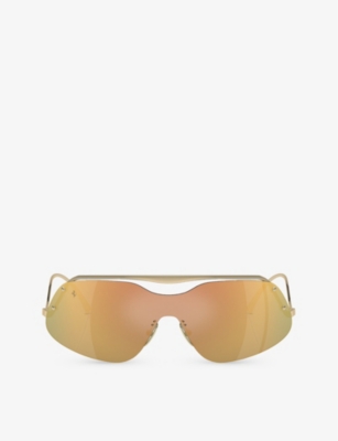 Aside from their fashion-world credentials, D-frame sunglasses have sportswear associations - notably with skiing. Shield-frames combine an ergonomic shape with sporty details, such as rubber trims and stripes that enhance their sleek shape. Keep an eye out for wraparounds that offer 360-degree coverage.