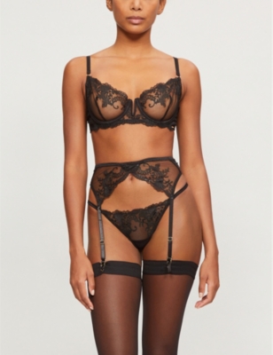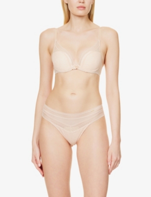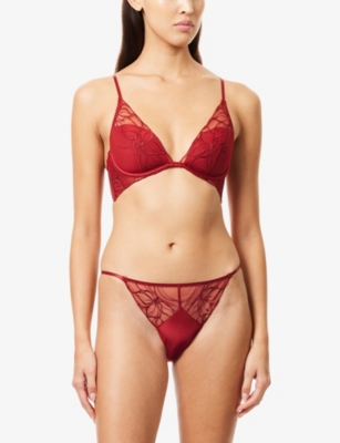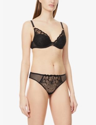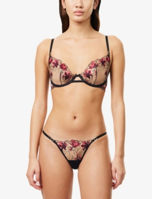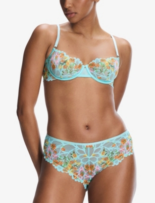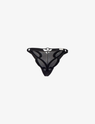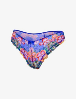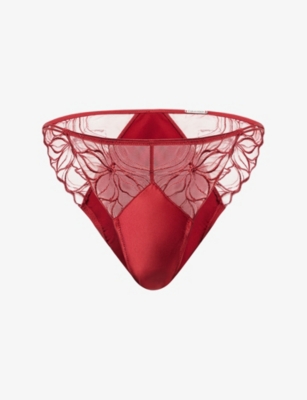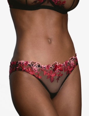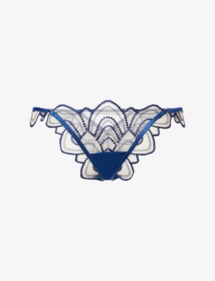 Hidden Halo Embroidered Stretch-Tulle Tanga Briefs