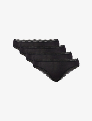 Lace-Trim Pack of Four Stretch-Modal Brazilian Briefs
