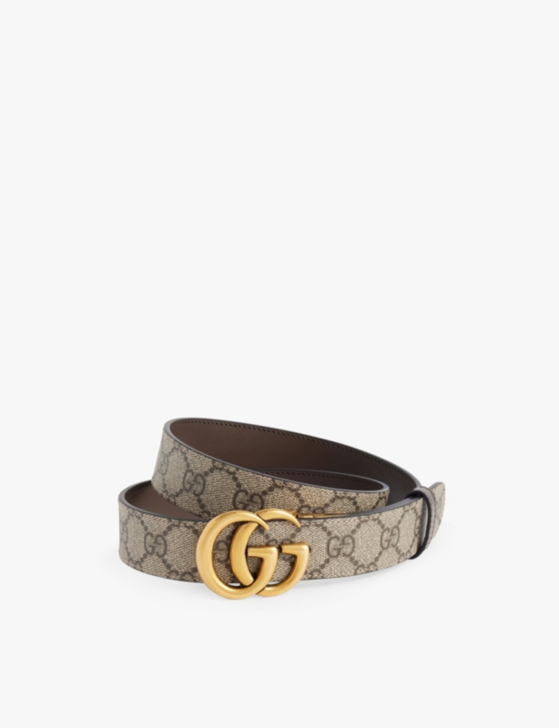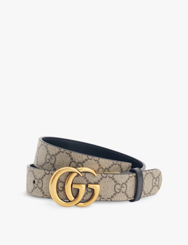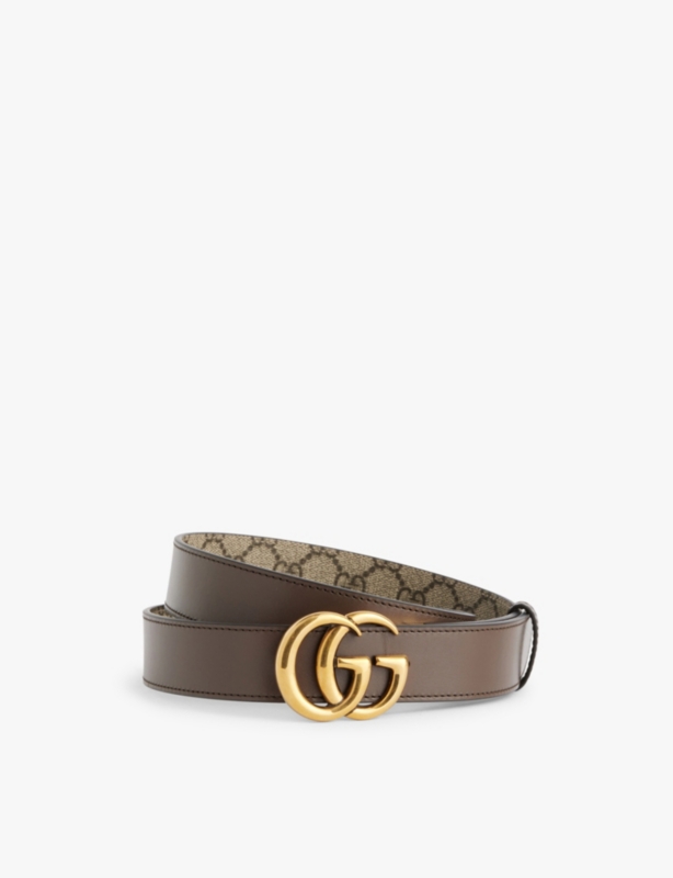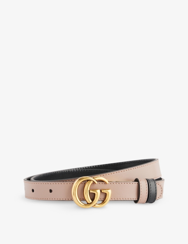 Founded in the fairytale city of Florence in 1921, Gucci orchestrates an operatic fantasy with its retro romantic suits and capes that cascade in chains of glittering crystals. Next time you slip on one of the label’s theatrical creations, we suggest you pair it with this reversible belt. Crafted from buttery leather, it’s patterned with the label’s entwined initials along its slender silhouette and fastens with a sinuous iteration of its unmistakable Double G emblem sculpted from polished, gold-toned metal.