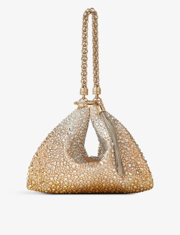 You’ll usually see Jimmy Choo’s Callie clutch worn one of two ways: either looped with the chain through the hoop to create a handheld evening bag or styled with the chain draped loosely over the arm. Made for after-hours (just look at the dazzling crystal embellishments sprinkled over the soft suede body), this piece is fully lined to provide a protective home to your small keepsakes all night long.