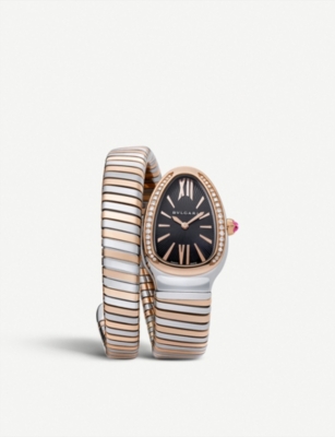 Serpenti 18ct pink-gold and stainless steel watch