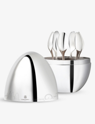 Explore our collection of Christofle silverware and admire sets of stainless-steel cutlery with branded embellishments adorning some items - keep an eye out for initials, lettering and trademark scales that tell you it's a Christofle. Everything is beautifully presented in tasteful storage capsules and boxes.