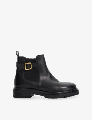 Tatter double-buckle flat leather knee-high boots- Discount price:€139.00