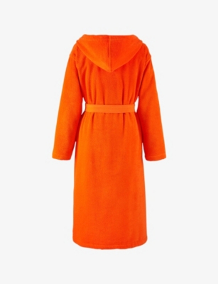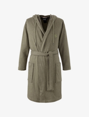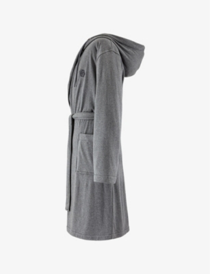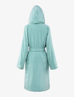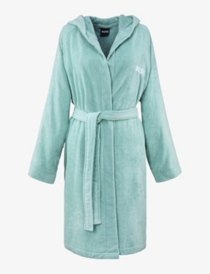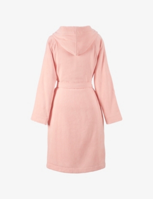 Plain logo-embroidered hooded cotton-velvet bathrobe- Discount price:€124.00