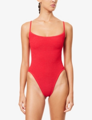 HUNZA G: Sadie scoop-neck crinkle-textured swimsuitHUNZA G: Sadie scoop-neck crinkle-textured swimsuit
