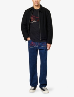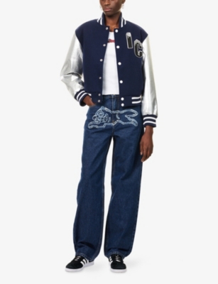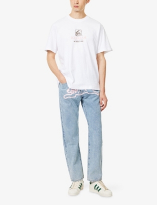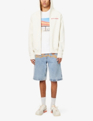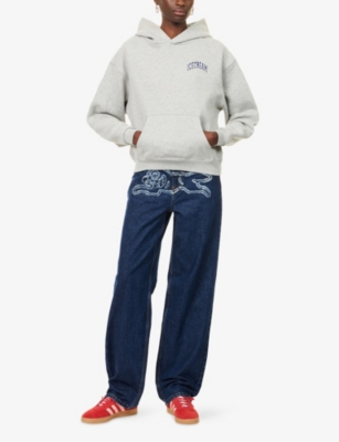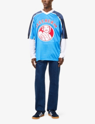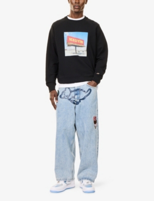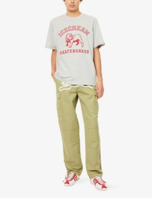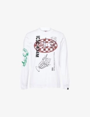 From the running dog to the iconic dollar cone, explore our hand-picked edit and discover each of the brand's signature stamps of approval on all your favourite designs. While the retro jogging bottoms print its namesake down the leg, the varsity bomber jacket is kept cool with three scoops of melting gelato. But why stop there? Go one step further and turn your house into a hype-worthy home with the design duo's selection of graphic rugs, cushions and hanging skate decks.
